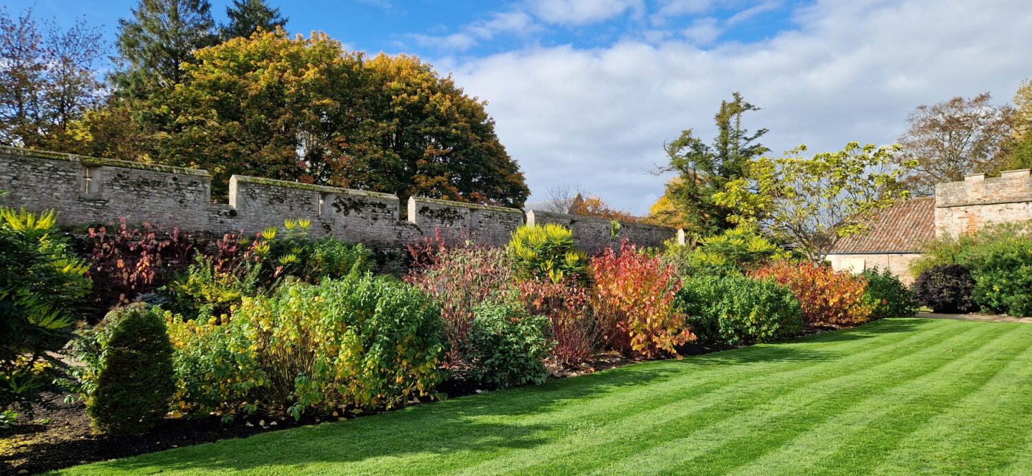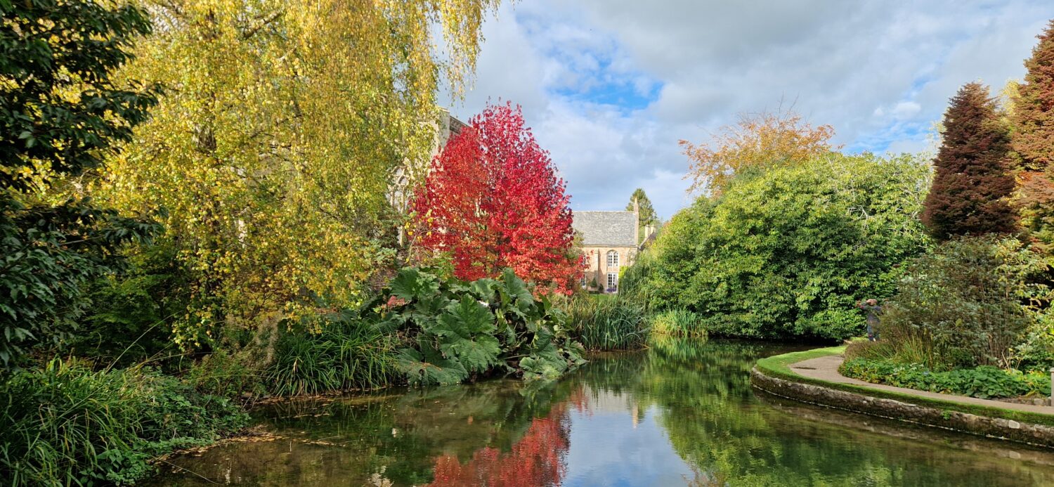 Many of our magnificent trees are worth watching, in particular the 200-year-old Ginkgo tree, which turns liquid gold. Its leaves are among the best for autumn display; however, they fall rather ungracefully to the ground like large, wet golden snowflakes, often all on a single day. In addition to the summer and autumn interest, many bulbs are appearing now, particularly snowdrops and daffodils, some of which will flower by December. But the king of autumn has to be our Liquidambar styraciflua (Sweetgum) by the Well Pools, which looks stunning from September to November. It is probably the best tree for planting, being highly tolerant of climate change, and is available in a wide range of large and smaller cultivars.