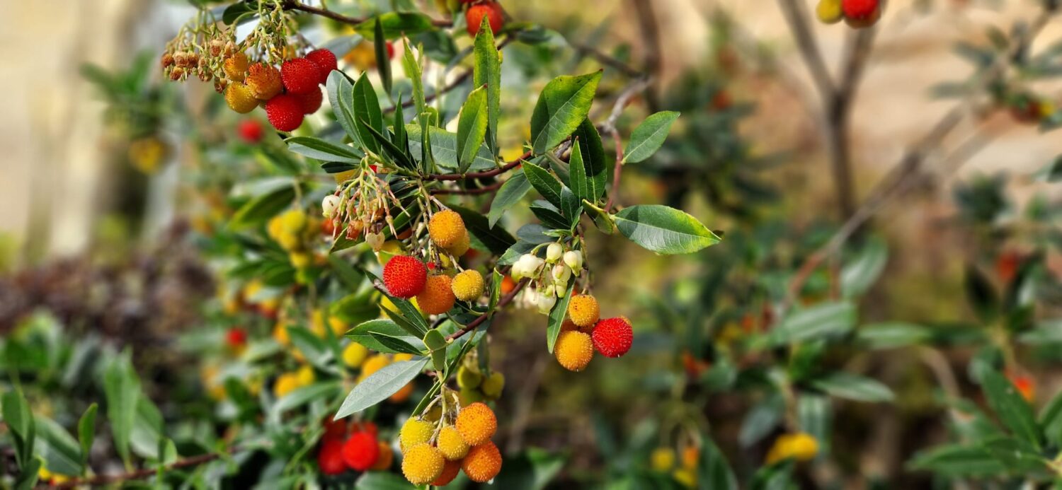 Our strawberry trees are full of bright red fruit, which look particularly exotic in November. The contrast between herbaceous structure, conifers, and shrubs reaches its peak, and in autumn sunshine, it makes these borders look spectacular. In addition to all this interest, there are still many roses and rose hips, dahlias flower until mid-month, and Salvias like ‘Amistad’ continue into December.